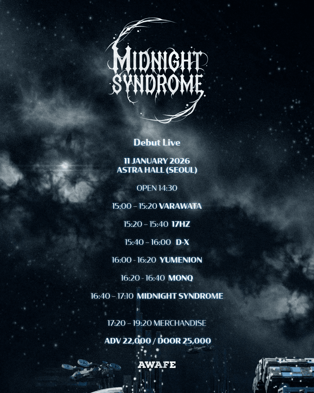AWAFE 라이부, MIDNIGHT SYNDROME 데뷔라이브 - Sun, Jan 11, 아스트라홀 | COLDSURF 공연 정보